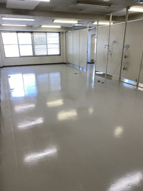今日は、約500平米の広さの大きな事務所の床の剥離をしてワックスコーティングを行いました。