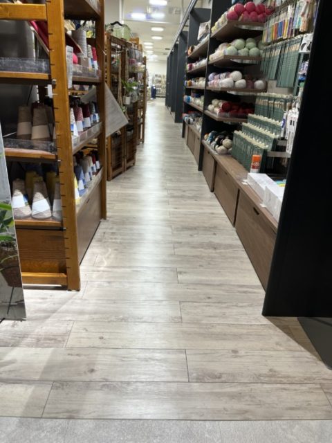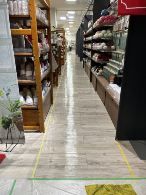 今回は、ミーナ天神の中の店舗様のオープンに向けて床のコーティングをしたのですが、什器の搬入や商品陳列の際に床に傷が入ったので直して欲しいとの依頼。