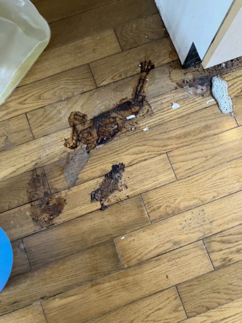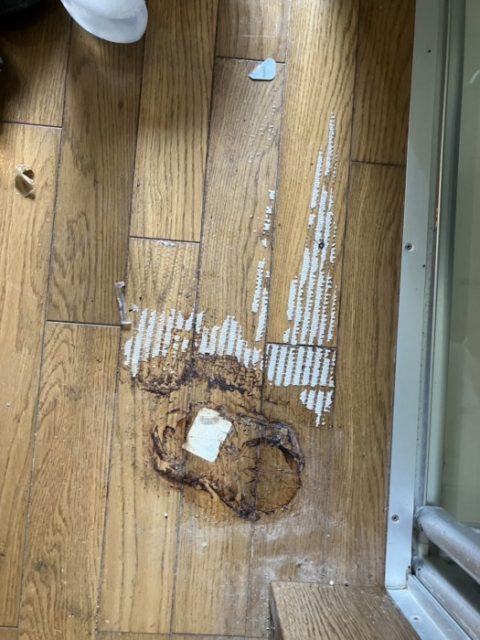 放置された生ゴミから出た液体がフローリングにたっぷり染み込んでいました(^^;)いや〜びっくり..